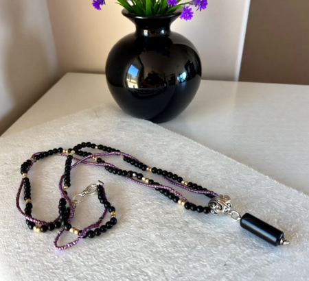 Black & Gold with a touch of Purple Necklace